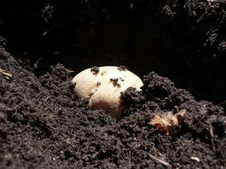 Чтобы корни картофеля полностью усвоили минеральные и органические удобрения, следует вносить их после посадки как можно глубже. При поверхностной заделке подкормок большая часть питательных веществ окажется невостребованной. Для небольших участков практикуется метод «под кол». Между картофельными рядами устанавливается деревянный кол таким образом, чтобы вокруг него располагались три растения. Такой способ позволяет удобрять кусты без опасения обжечь и повредить стебли и корни. После извлечения кола в полученное углубление вливаются растворенные в воде подкормки, а после отверстия в грунте засыпаются.